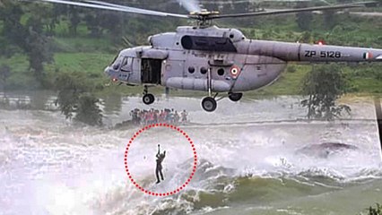 A man got stuck in heavy flow of Khutaghat Dam near Ratanpur area of Bilaspur after he jumped in the weir on August 16 evening but couldn’t get out due to heavy flow. He sat on a stone holding a tree to save himself. But due to bad weather and heavy flow of water, he couldn’t be rescued. On August 17 morning, Indian Air Force (IAF) chopper, Mi-17 came to rescue him. Miraculously, he got airlifted and was rescued safely
