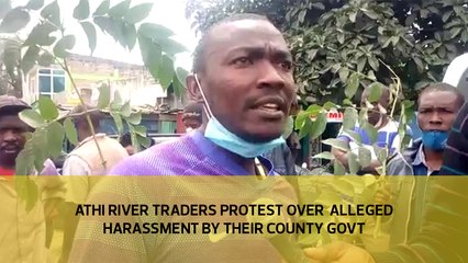 Athi River traders are protesting against Machakos County government over alleged harassment and arrests of businessmen who haven’t renewed their 2019/2020 single business permits.