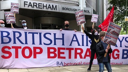 Unite The Union members are holding a demonstration against British Airways about staff cuts outside Fareham civic offices, Fareham on 18 August 2020.