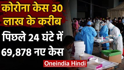 India on Saturday reported its highest single-day spike of 69,878 Covid-19 cases, taking the total count close to 30 lakh. The total death toll stands at 55,794, the Ministry of Health and Family Welfare said. Earlier, the ministry had said that India has crossed the milestone of 1 million Covid-19 tests in a day.Watch video,
