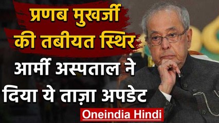 पूर्व राष्ट्रपति प्रणब मुखर्जी की तबीयत में पहले से कोई सुधार नहीं है. उनकी तबीयत अभी भी नाजुक बनी हुई है।शनिवार को भी उनकी सेहत में कोई सुधार नहीं दिखा. उनके फेफड़े में इनफेक्शन है जिसका इलाज चल रहा है. उनके वाइटल पैरामीटर्स स्थिर हैं और फिलहाल वो वेंटिलेटर पर ही हैं..