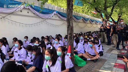 Hundreds of Thai students protested against the country’s government with a rally outside the Ministry of Education in Bangkok, Thailand, today (Aug 19).