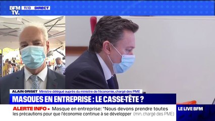 Le ministre délégué auprès du ministre de l’Économie en charge des PME, Alain Griset, a assuré sur BFMTV ce mercredi que le refus de porter un masque au sein de l’entreprise pourra être considéré comme "une faute".