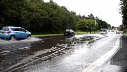 WIGAN - 26-08-20 The scene of Scot Lane, near Martland Mill Lane, Wigan, as Storm Francis brought heavy rainfall, flooding roads.