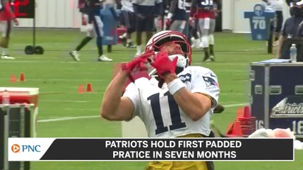 The Patriots held their first padded practice in seven months and Doug Kyed was there to take a look at who is standing out early in the NFL season.