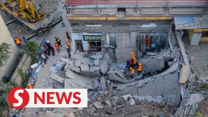 The two-storey building in Xiangfen county, Shanxi province, came down on Saturday morning during an 80th birthday party, according to official news agency Xinhua.