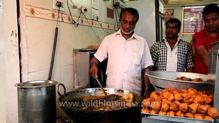 To the typical tourist, this small but popular eatery may simply seem completely typical of an overcrowded Indian city, however its owner has a very special talent: he regularly dips his hands into the boiling oil of his deep fry wok either to pluck out his restaurant’s signature fried fish, or simply to impress his customers. Somehow he has discovered a way to block out of the pain caused by touching boiling hot oil over 170°C, or 340°F. Either that or the nerves in his hands have become seriously damaged and as a result he cannot feel pain in his hands. Regardless of the secret to his talent, he doesn’t rely solely on this gimmick to attract the throngs of customers that come to his restaurant daily, as the rest of the items on the menu can easily compete with the finest non-vegetarian dishes the country can offer. This footage is part of the professionally-shot broadcast stock footage archive of Wilderness Films India Ltd., the largest collection of HD imagery from South Asia. The Wilderness Films India collection comprises of tens of thousands of hours of high quality broadcast imagery, mostly shot on HDCAM / SR 1080i High Definition, Alexa, SR, HDV and XDCAM. Write to us for licensing this footage on a broadcast format, for use in your production! We are happy to be commissioned to film for you or else provide you with broadcast crewing and production solutions across South Asia. We pride ourselves in bringing the best of India and South Asia to the world… Reach us at rupindang @ gmail . com and admin@wildfilmsindia.com.