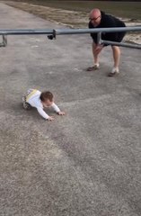 While out for an evening walk with her parents, this toddler saw her dad go under a closed gate. She clapped for him excitedly, followed by imitating him. She attempted to go under it, thinking she’ll hit her head, she crawled on the ground to get under the gate. She didn’t realize that she would be able to clear the gate by walking beneath the barrier without barely ducking.