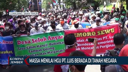 LUMAJANG, KOMPAS.TV - Ratusan warga, yang tergabung dalam aliansi masyarakat peduli lingkungan, berunjuk rasa di depan kantor Badan Pertanahan Nasional Kabupaten Lumajang Jawa Timur pada Rabu (19/08).